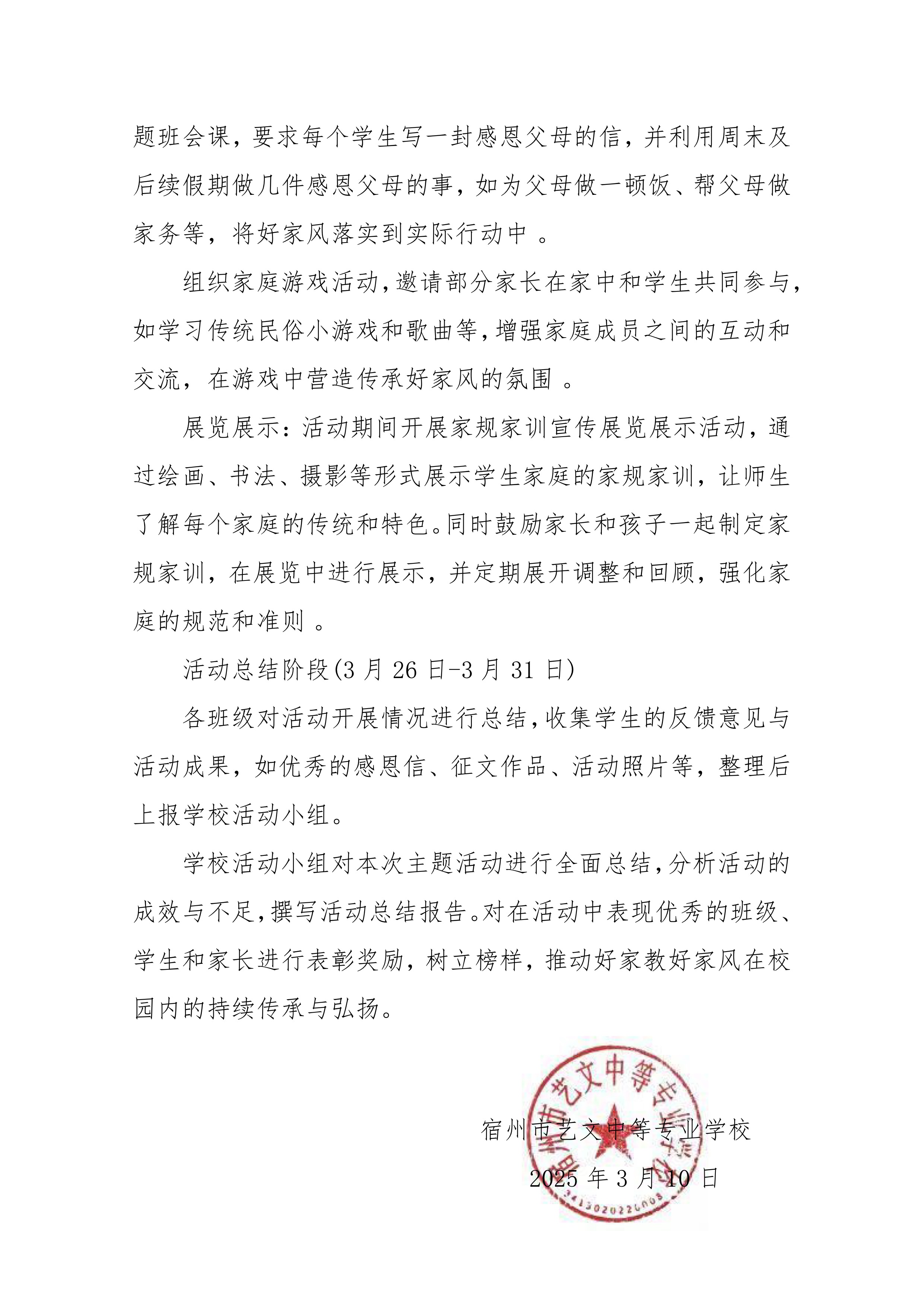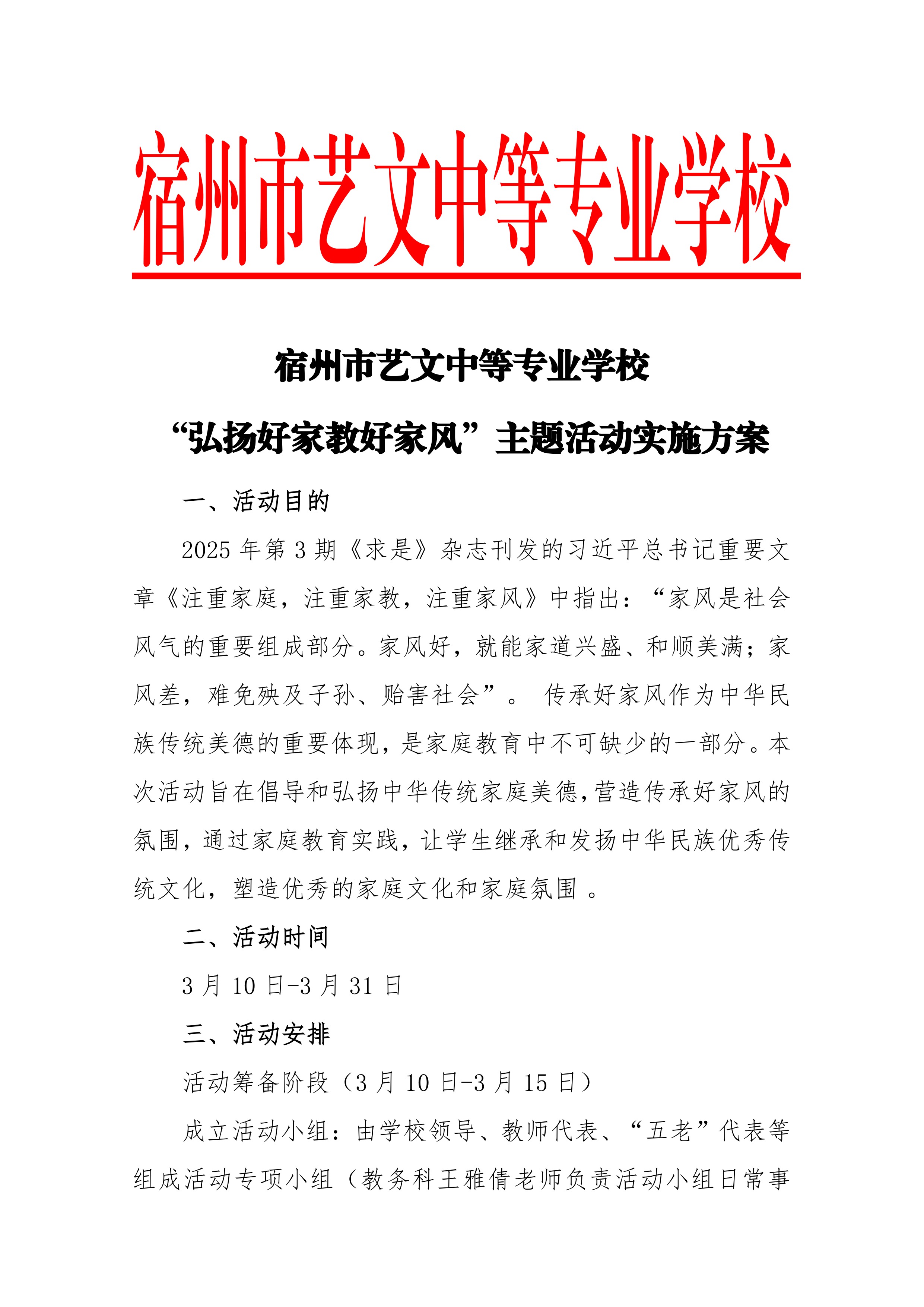 宿州市藝文中等專業(yè)學(xué)校 “弘揚(yáng)好家教好家風(fēng)”主題活動(dòng)實(shí)施方案